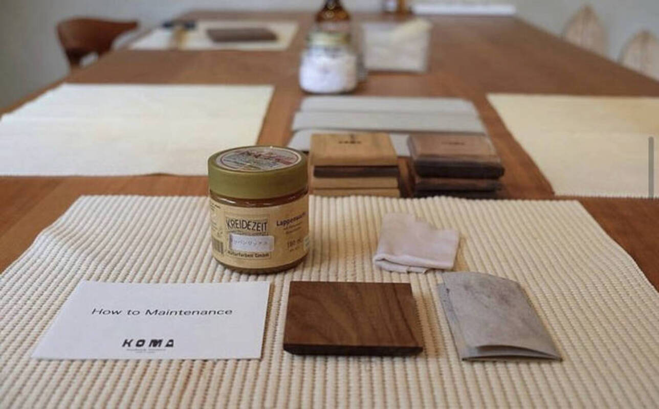 キズやヘコミができた場合や白っぽくなってしまった家具のメンテナンス方法を直接レクチャーし体験していただくワークショプ。